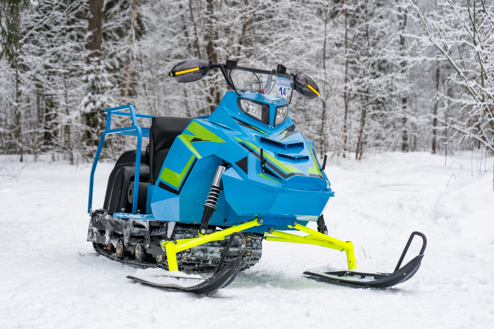- благодаря облегченной передней части миниснегоход лучше преодолевает препятствия и не зарывается в снегу,